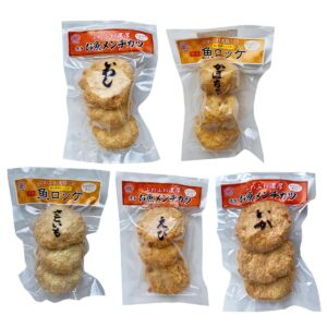 - 内容量…(ふわふわいかメンチカツ、ふわふわえびメンチカツ、ふわふわいわしメンチカツ、さといもギョロッケ、かぼちゃギョロッケ)各3個入×1
