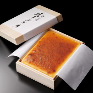 木箱にぴったりと入ったチーズケーキは高級感があり、大切な方への贈り物におすすめ。箱を開けた時の美しさ、スプーンですくった時の濃密さと美しい断面、口に入れた時に広がる上品な味わいなど、何度も感動するチーズケーキです。