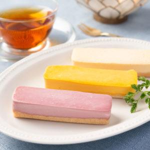 3種類のケーキを1つの商品で味わうことができるのは、お得な気分になりますよね。カットしやすい長方形のケーキで、来客用にもおすすめです!
