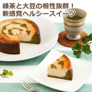 約560〜600gのホールケーキで、カットした時の美しい断面も魅力。チーズ・緑茶・大豆・レモンなどの風味を感じながら、ぜひティータイムに楽しんでみるのはいかがでしょうか。