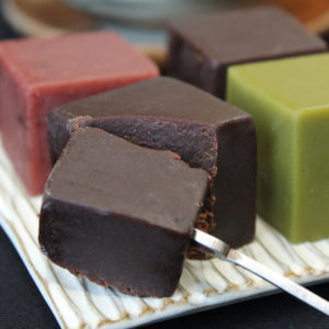 一口サイズのキューブ羊羹を4種類楽しむことができるセットです。