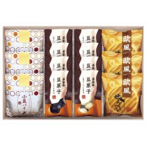 小豆パイ・欧風せんべい・豆菓子2種類の合計4種類が入った和菓子詰め合わせ。