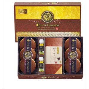 どら焼き・和三盆糖入りかすてぃら・オリーブオイルがセットになった、贅沢な詰め合わせ。
