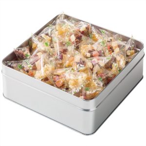 大きな缶に525g分のドライフルーツが入っており、全て個包装になっています。