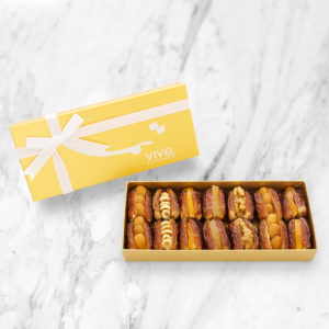 • 内容量…デーツ14個入(アーモンド×4、オレンジ×4、ヘーゼルナッツ×2、レモン×2、クルミ×2)
