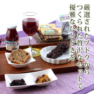 • 内容量…そのまんま干しぶどう×2 干しぶどうミックス(15g)、レーズン(20g)、ジュース(360ml)×2、焼き菓子×6個