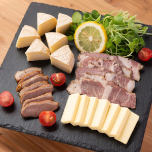 • 内容量…スモークカマンベール100g、ナチュラルチーズの燻製50g、豚肩ロースのくんせい50g、合鴨の燻製30g