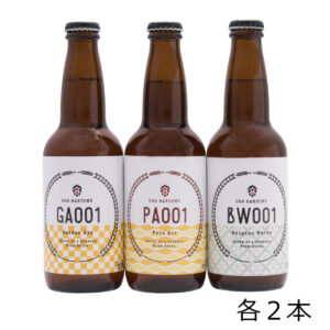 • 内容量…GA001(ゴールデンエール)×2本、PA001(ペールエール)×2本、BW001(ベルジャンホワイト)×2本