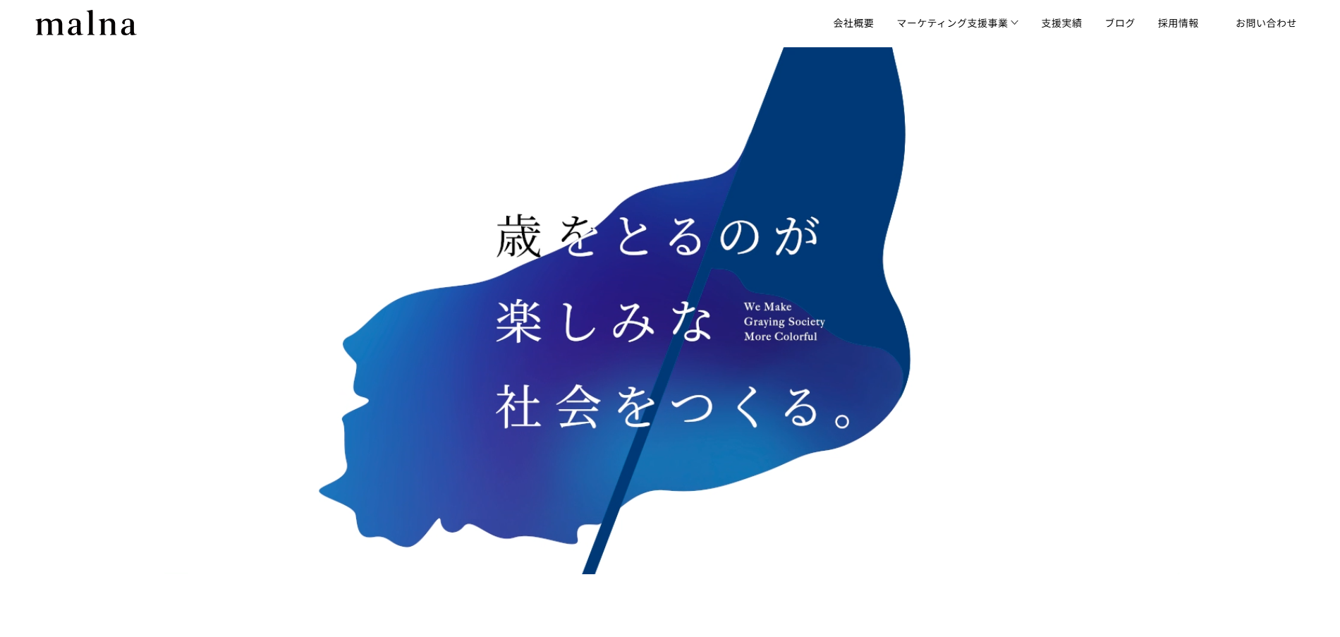 malna株式会社は、歳をとるのが楽しみな社会を目指し、 「WEBマーケティング支援」と「自社プロダクト開発」の 二軸で事業を展開しています。