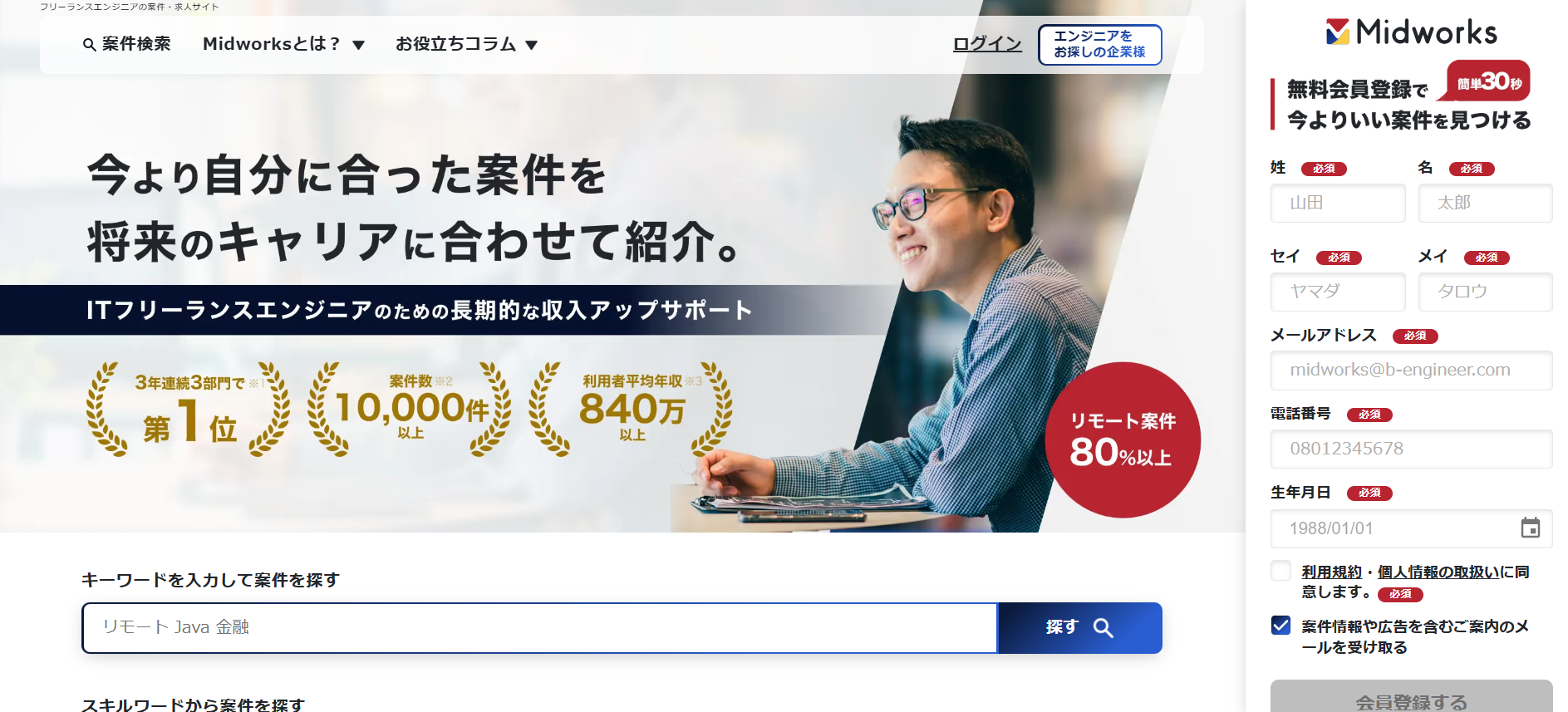 案件がまとめて紹介されており、自分で検索・応募することができます。サポートはありませんが、その分自由度が高い点がメリットです。