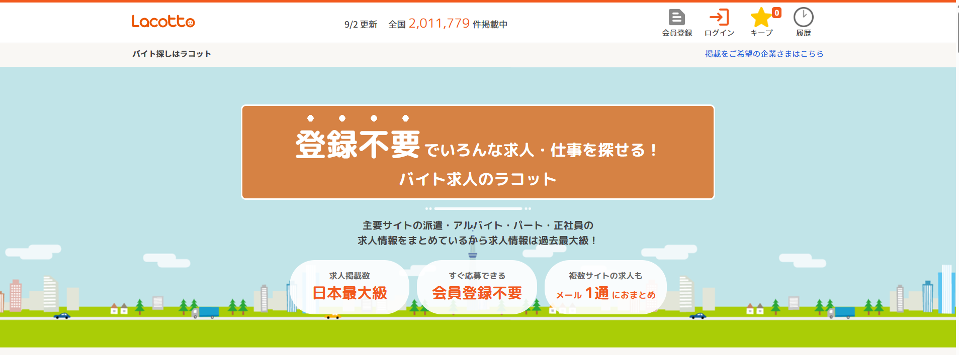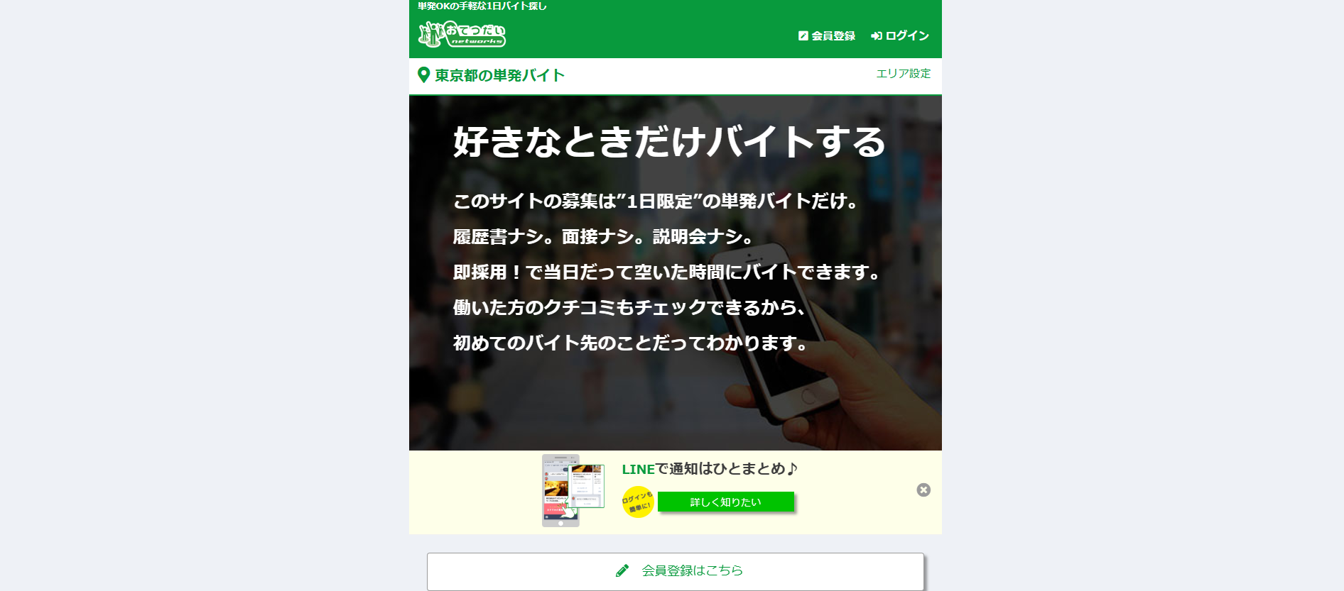 また会員登録なしで利用できるのも使いやすいポイントです。検索はもちろん、応募まで登録不要です。