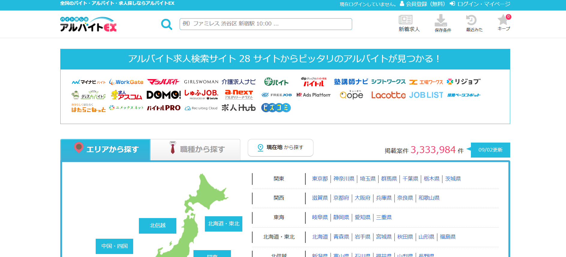 アルバイトEXは28のサイトのバイト求人を一括検索・一括応募できる