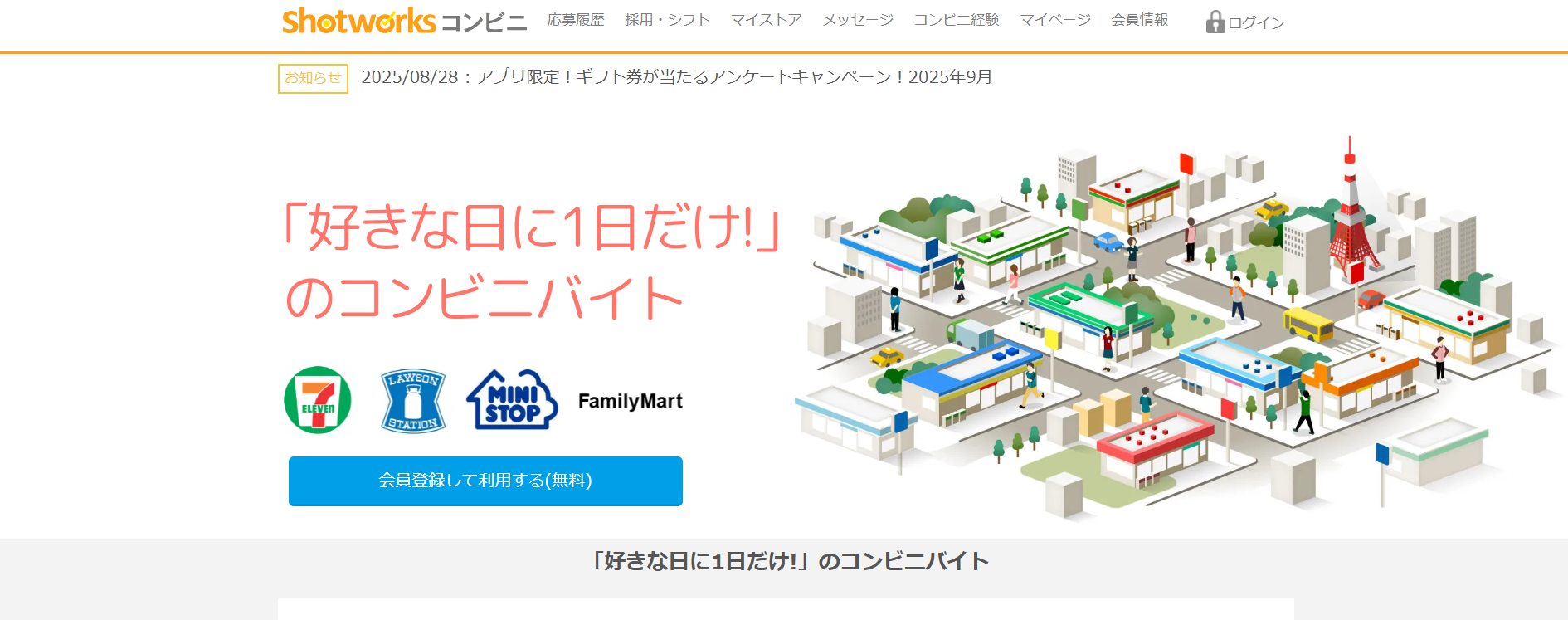 2021年以降のコンビニバイト経験さえあれば利用可能。採用シフト管理機能もあり、出勤スケジュールを把握しやすいのもおすすめポイントです。
