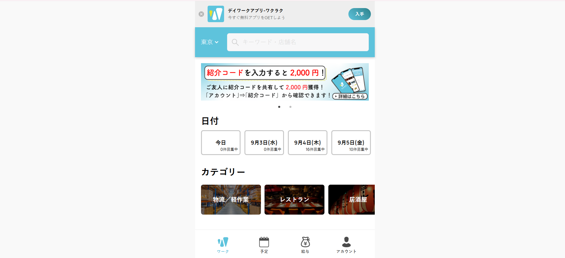 当日の申し込みもOK、振り込みも最短30秒とまさに「サクッと」働いて稼ぐことができるのが特徴です。