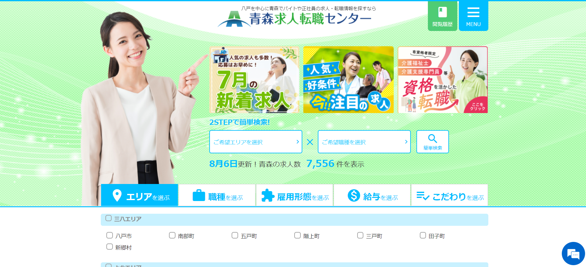 地元密着型の転職サイトで、U・I・Jターンにも強いのが特長です。青森県に特化しており、県内の求人を多数保有。正社員以外の雇用形態にも対応しています。エリア別検索は市町村別に細かく設定することが可能で、使いやすいのもうれしいポイントです。