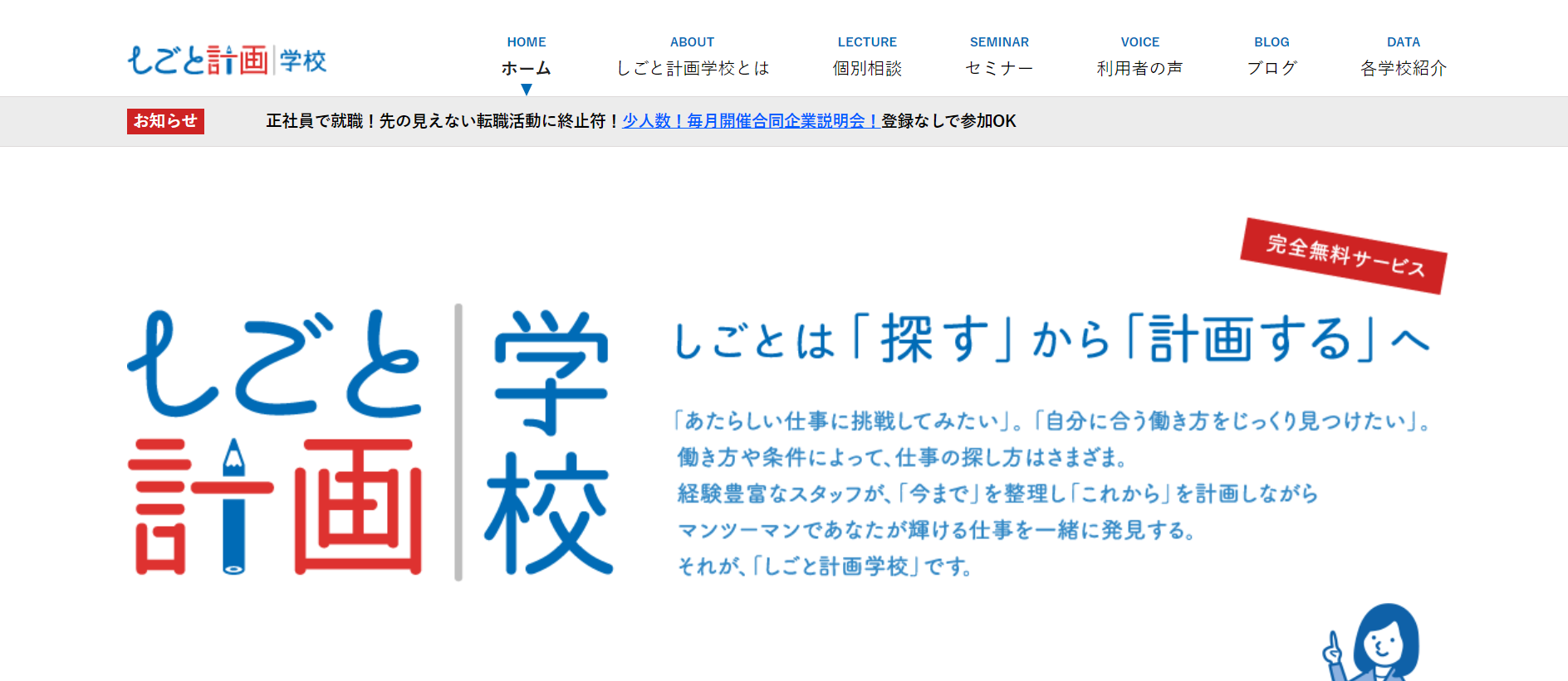 愛媛県内で様々な個別相談などのサポートを行う「しごと計画学校」は、転職希望者の相談にも応じる転職エージェントです。