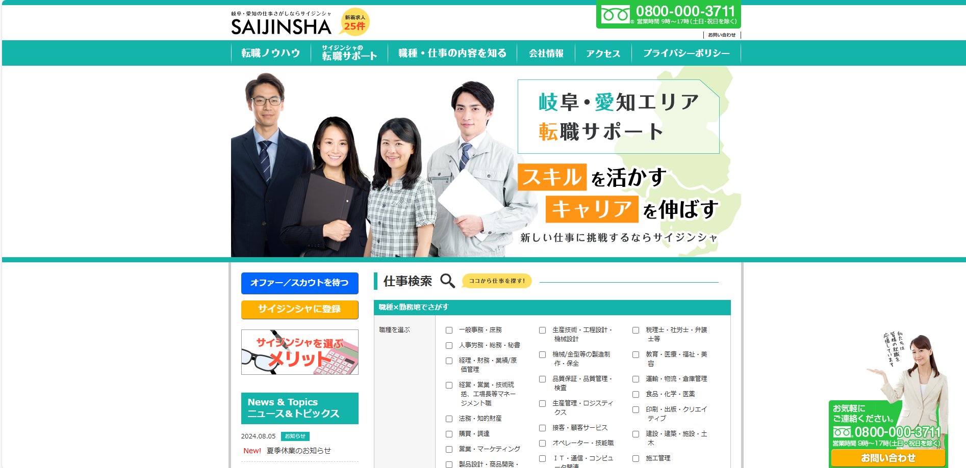 「名大社 転職エージェント」は、岐阜・愛知・三重に特化した老舗の転職エージェントです。