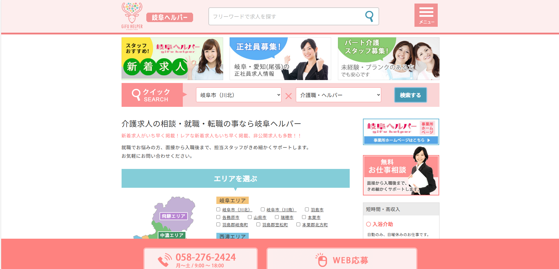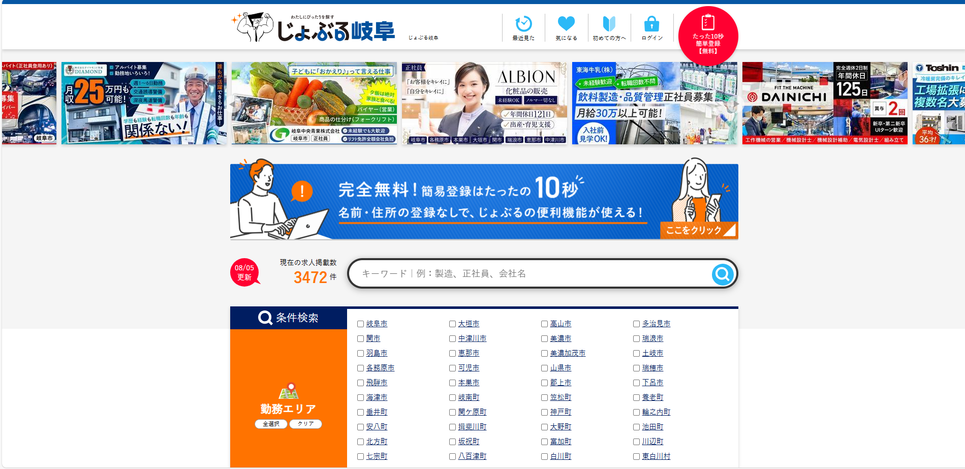 地元密着型の転職サイトで、U・I・Jターンにも強いのが特長です。岐阜県に特化しており、県内の求人を多数保有。正社員以外の雇用形態にも対応しています。エリア別検索は市町村別に細かく設定することが可能で、使いやすいのもうれしいポイントです。