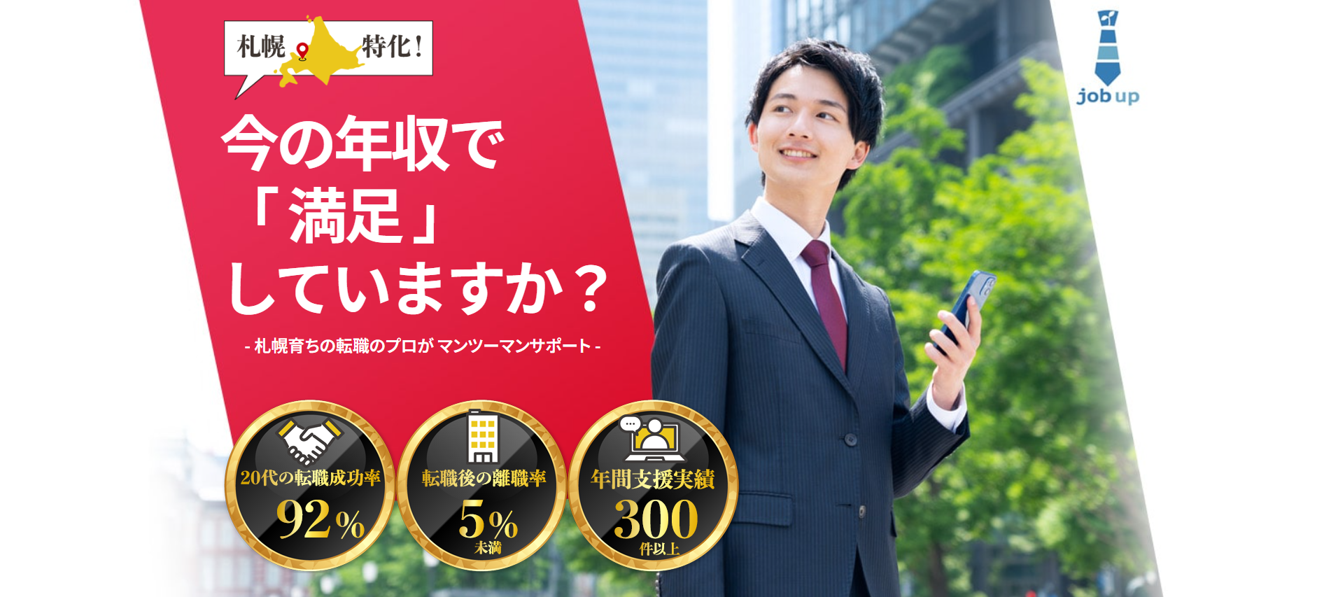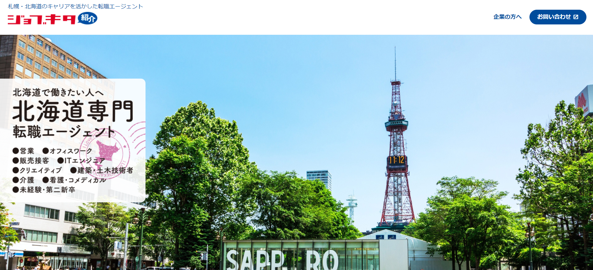 「job up」は、北海道の中でも札幌の求人を専門としており、札幌の中心にオフィスを構え直接会える転職エージェントです。