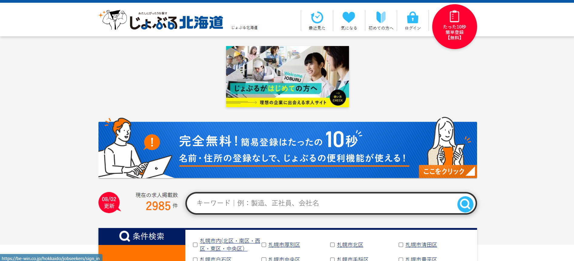 北海道の求人数 | 公開求人8,350件/非公開求人3,108件 |