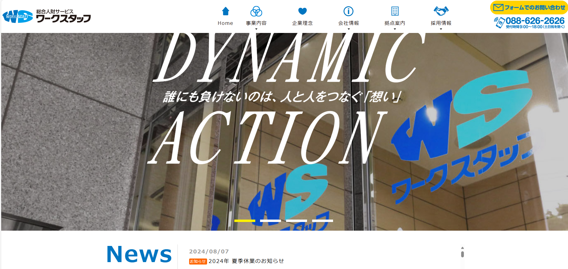 高知県内で転職サポートを行う「株式会社ワークスタッフ」は、様々な業種の求人情報を掲載している転職エージェントです。