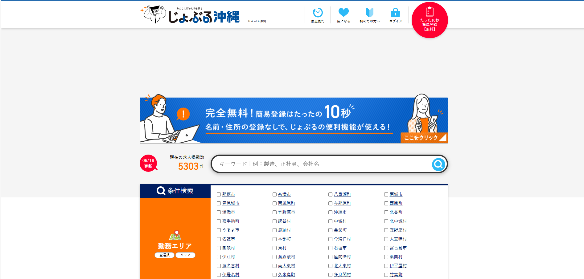 地元密着型の転職サイトで、U・I・Jターンにも強いのが特長です。沖縄県に特化しており、県内の求人を多数保有。