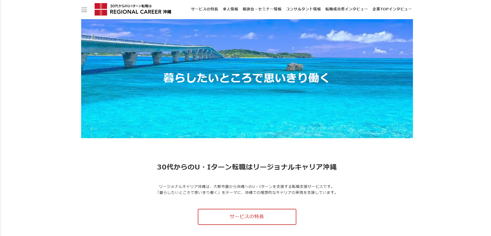 「リージョナルキャリア沖縄」は、沖縄県×U・Iターン転職に特化した転職エージェントです。