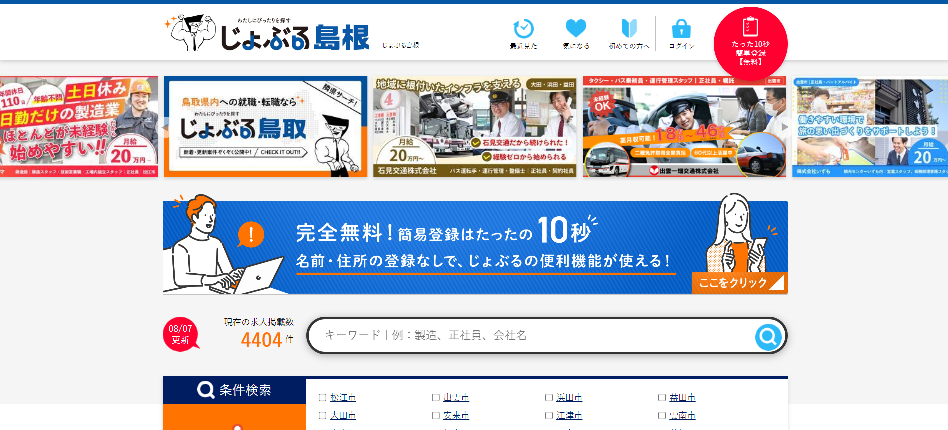 地元密着型の転職サイトで、U・I・Jターンにも強いのが特長です。島根県に特化しており、県内の求人を多数保有。