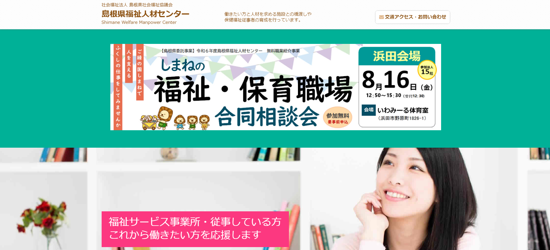 福祉関連の求人情報を掲載している「島根県福祉人材センター」は、主に島根県に特化した転職エージェントです。福祉分野の情報が多く、求人情報だけでなくアドバイスなどを提供しています。