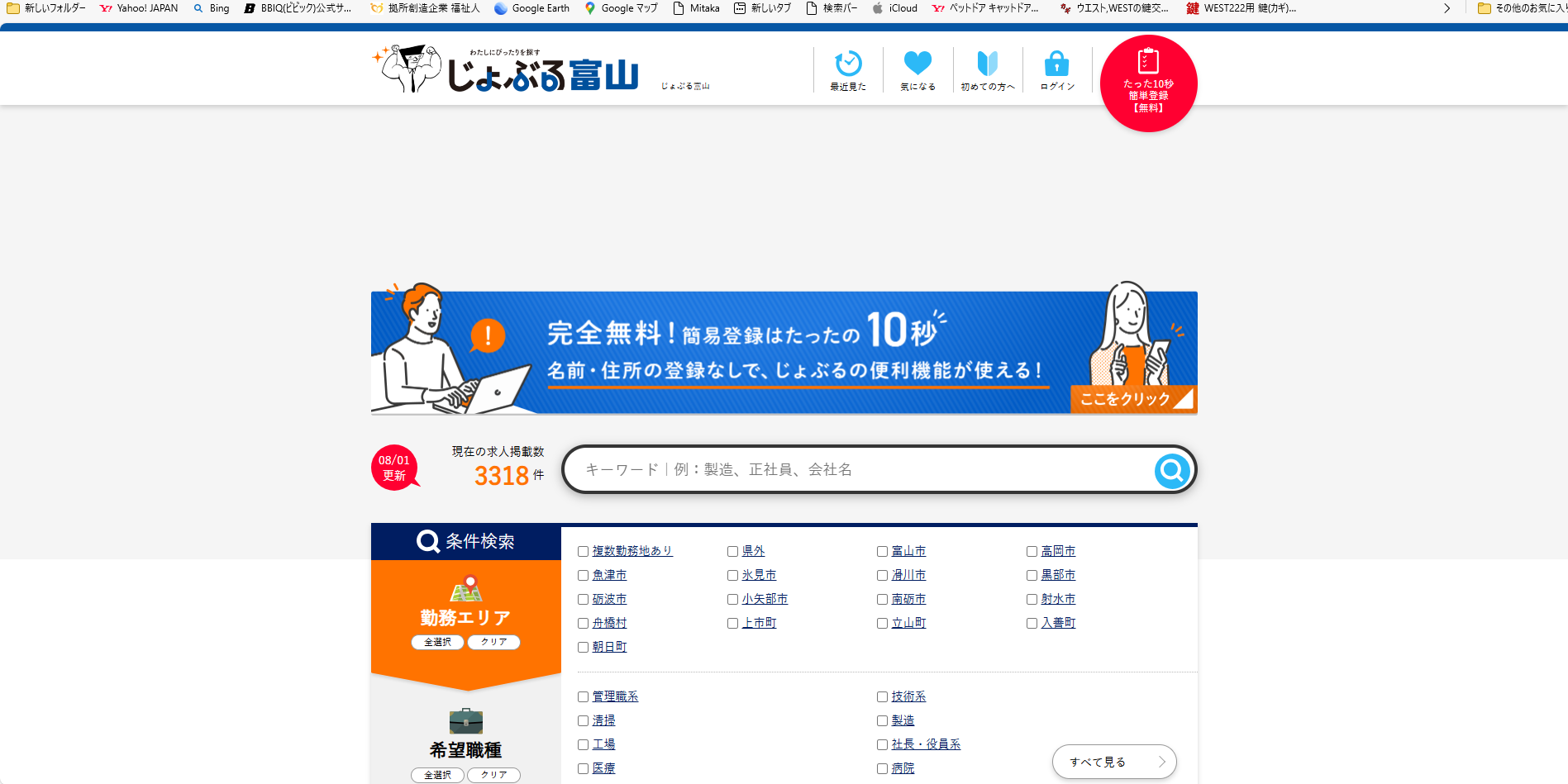地元密着型の転職サイトで、U・I・Jターンにも強いのが特長です。富山県に特化しており、県内の求人を多数保有。正社員以外の雇用形態にも対応しています。エリア別検索は市町村別に細かく設定することが可能で、使いやすいのもうれしいポイントです。