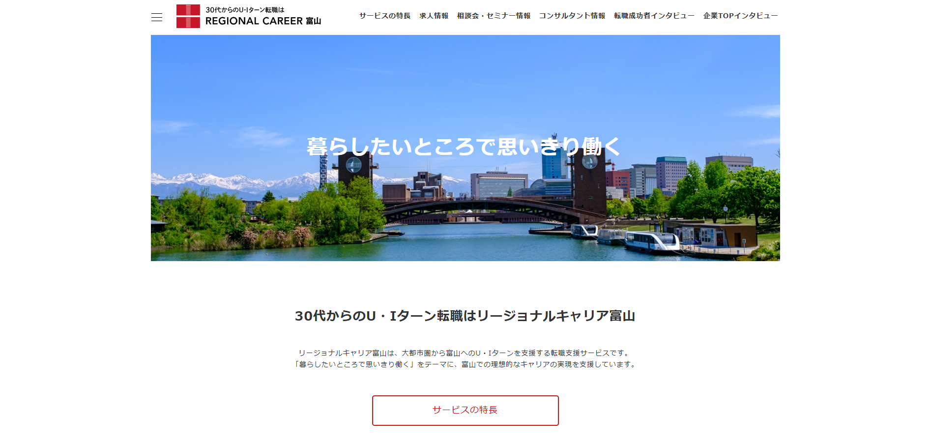 「リージョナルキャリア富山」は、富山×U・Iターン転職に特化した転職エージェントです。