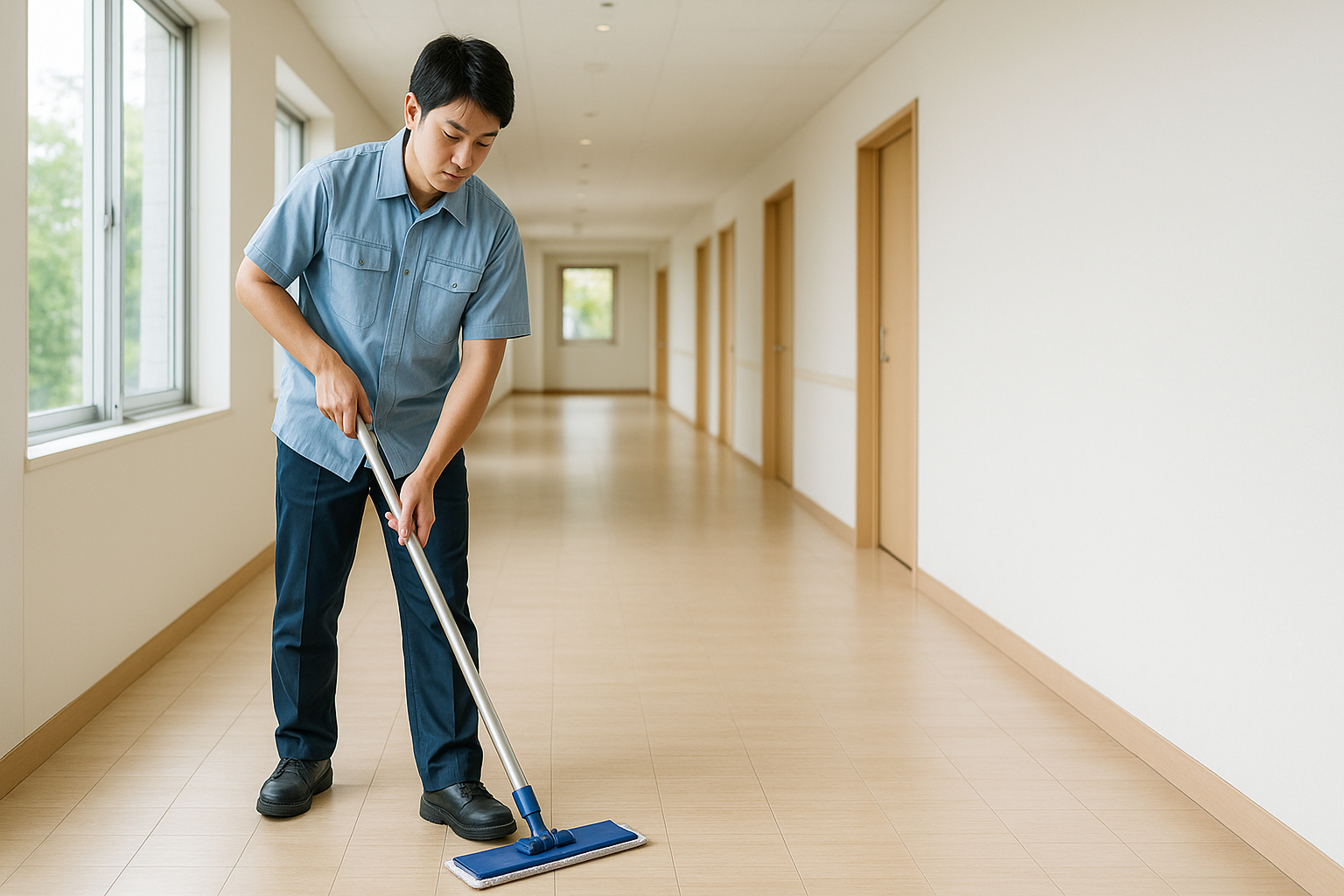 清掃スタッフは、主にオフィスビルや公共施設などの清掃を行います。