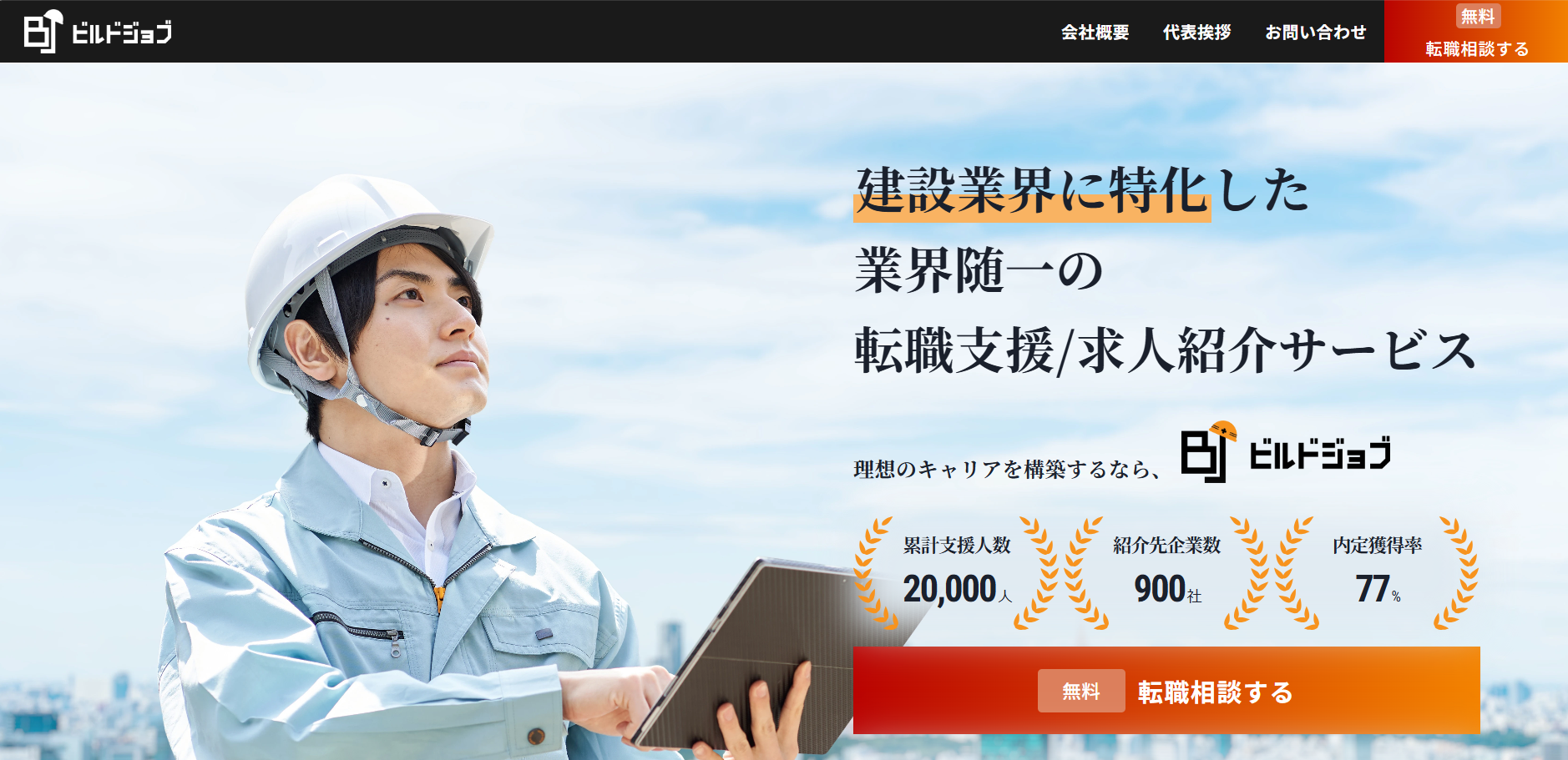 建築未経験の就職にも強いのが最大の特長です。サポートも手厚く、転職が初めての人におすすめ。求人も未経験OKが多いので応募しやすいでしょう。