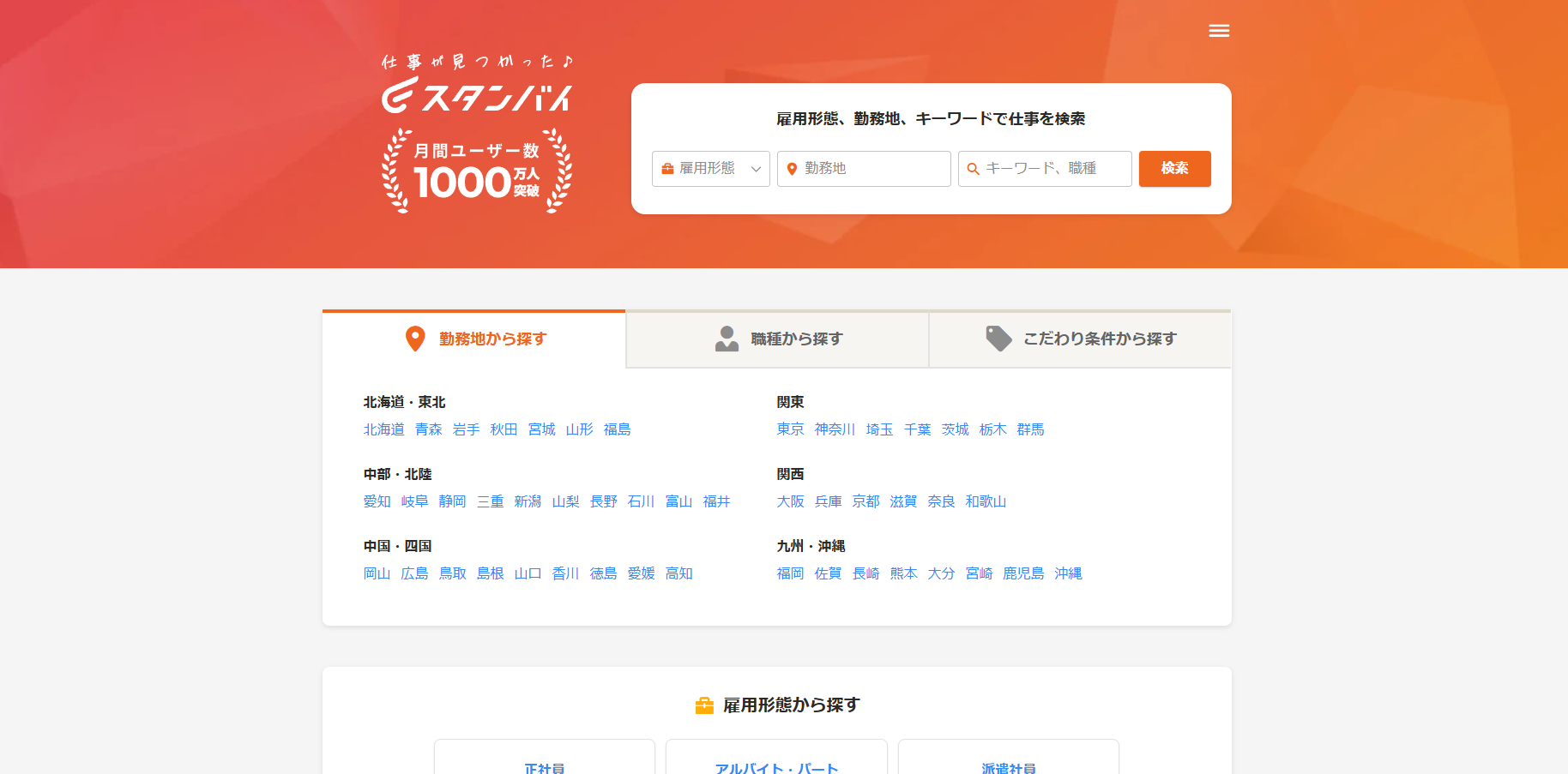 「スタンバイ」は、月間ユーザー数1000万人を突破した国内最大級の求人検索エンジンです。建設業界の転職先も豊富に掲載されており、新たな転職先を目指す人にとっても使いやすいサービスです。