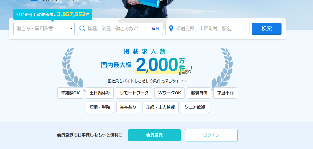 求人数 公開求人数:1000万件以上(2025年4月15日現在)