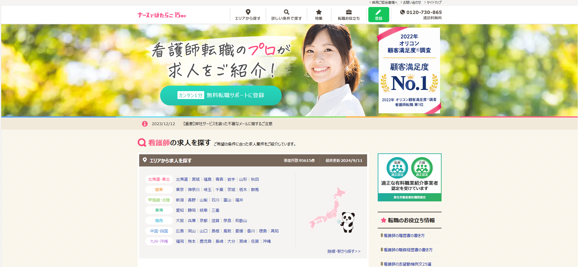 未経験の就職にも強いのが最大の特長です。サポートも手厚く、転職が初めての人におすすめ。求人も未経験OKが多いため、准看護師から異業種へ挑戦したい場合にも応募しやすいでしょう。