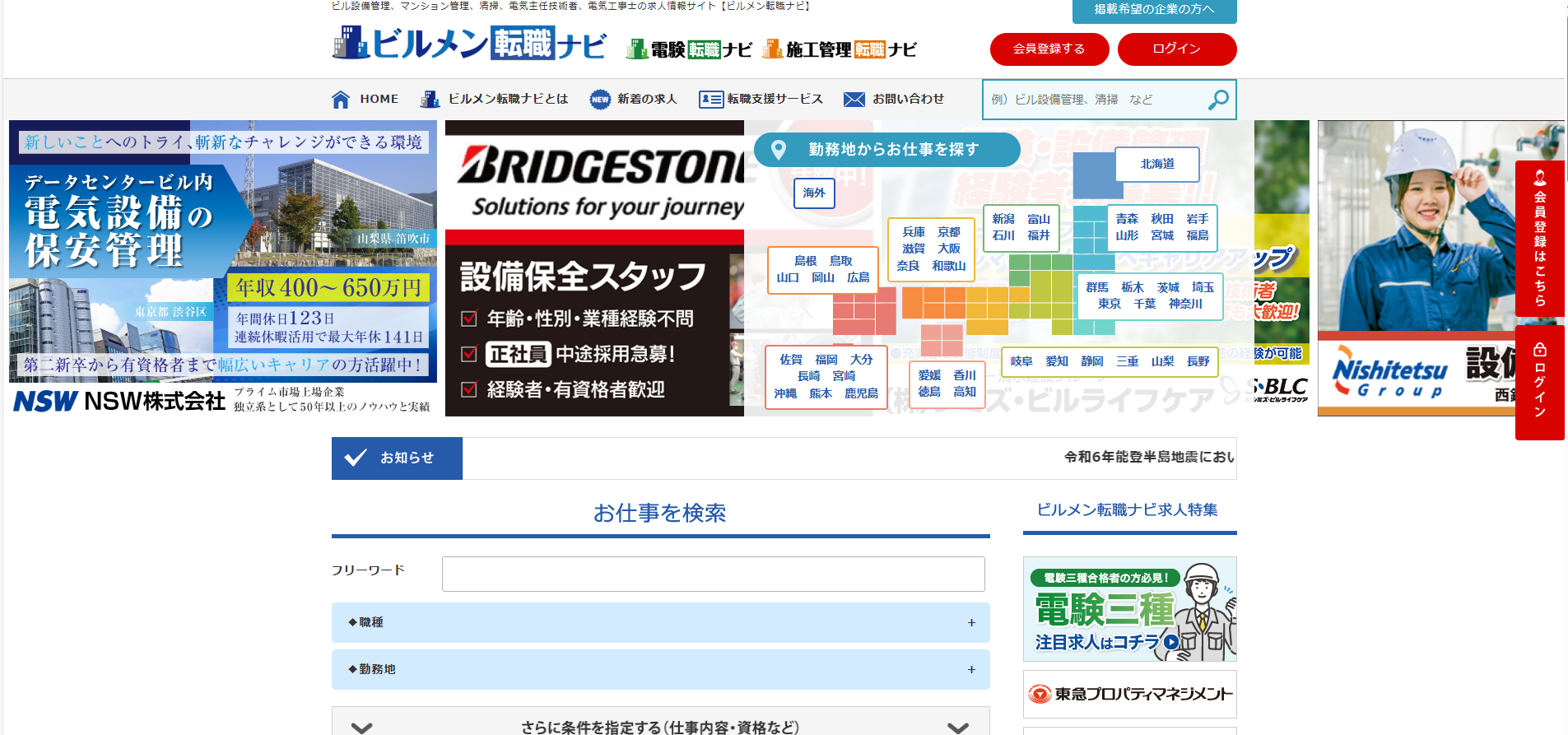 サイトが見やすく使いやすいのも特長です。職種別のページやエリア別のページにもすぐに移動でき、検索するのも楽でしょう。