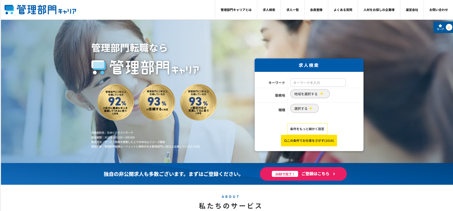 サイトが見やすく使いやすいのも特長です。職種別のページやエリア別のページにもすぐに移動でき、検索するのも楽でしょう。