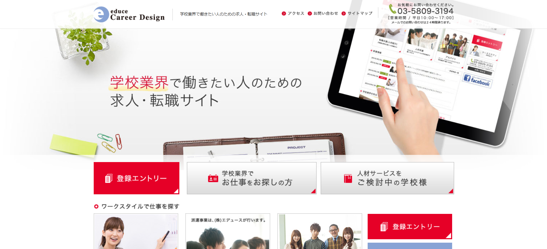 サイトが見やすく使いやすいのも特長です。職種別のページやエリア別のページにもすぐに移動でき、検索するのも楽でしょう。