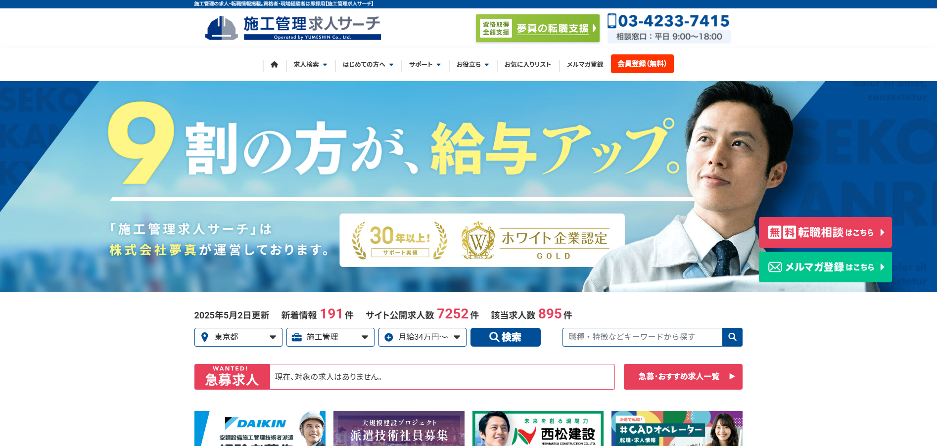 求人は取材の上掲載されており、安心度が高いと言えるでしょう。職種未経験歓迎・業種未経験歓迎の求人も多数あるため建設コンサルト未経験だとしても安心です。