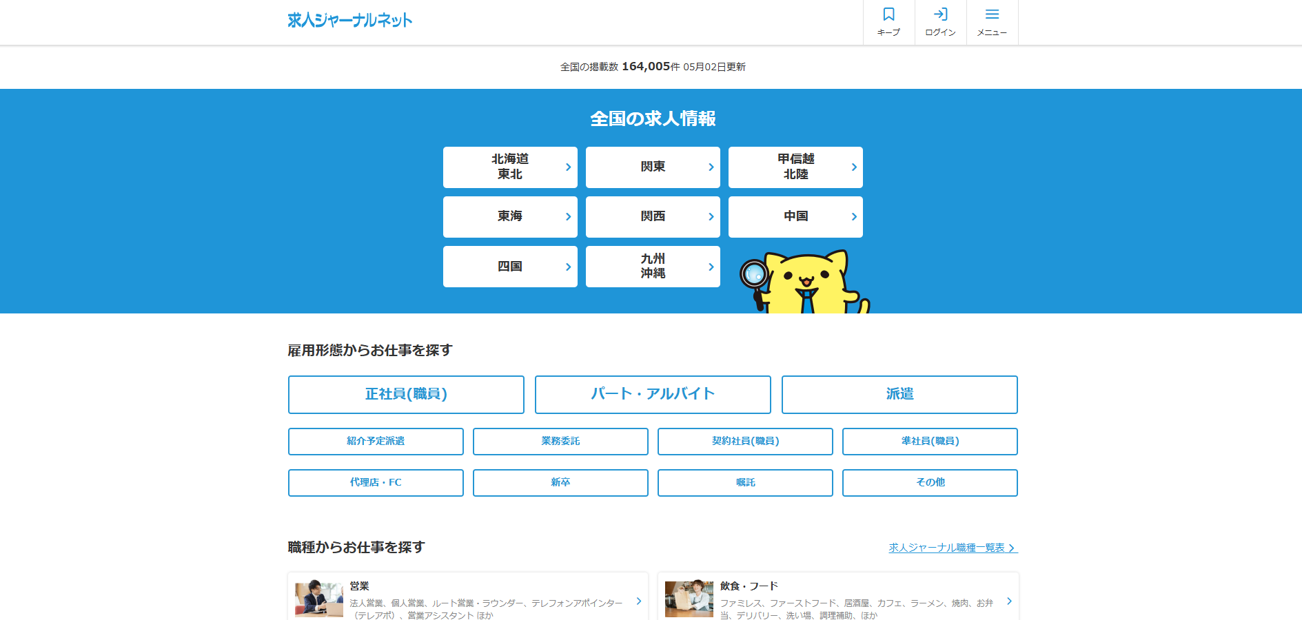 転職エージェントとしても利用でき、非公開求人も数多く保有。サイトが見やすく使いやすいのも特長です。職種別のページやエリア別のページにもすぐに移動でき、検索するのも楽でしょう。