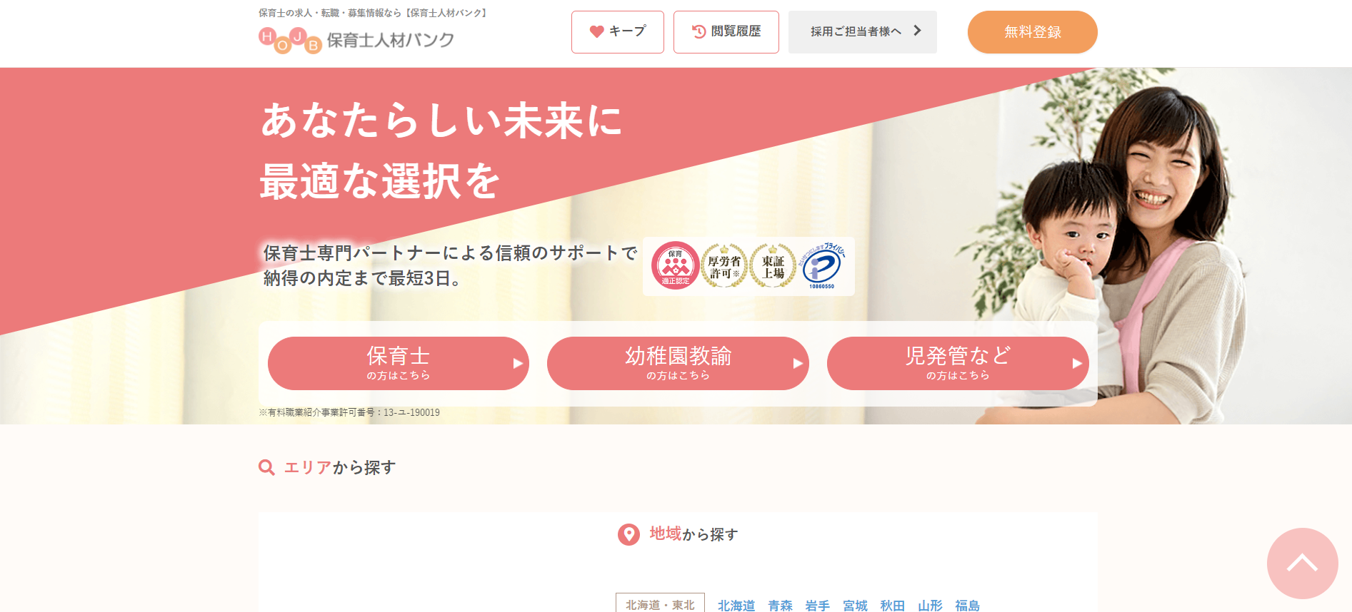 サイトが見やすく使いやすいのも特長です。職種別のページやエリア別のページにもすぐに移動でき、検索するのも楽でしょう。