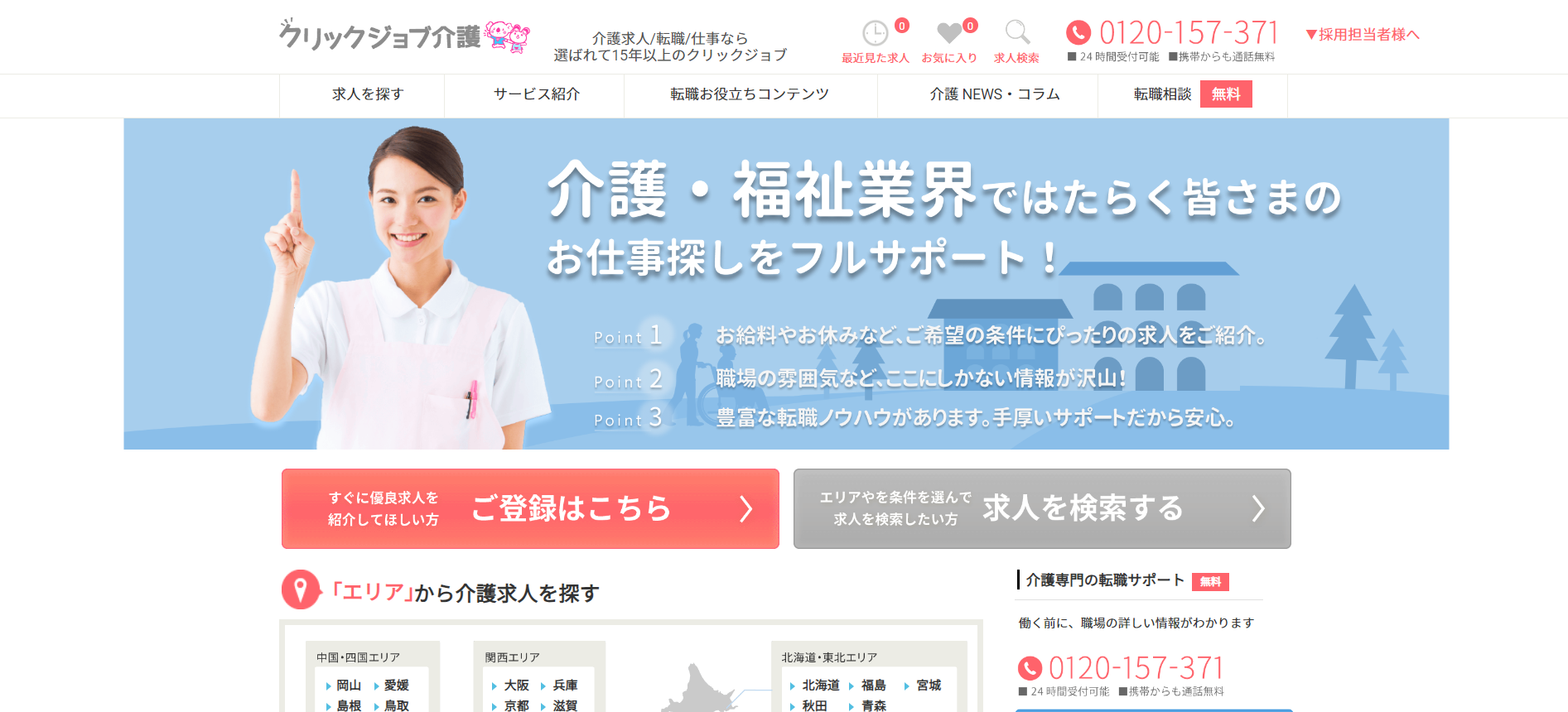 サイトが見やすく使いやすいのも特長です。職種別のページやエリア別のページにもすぐに移動でき、検索するのも楽でしょう。