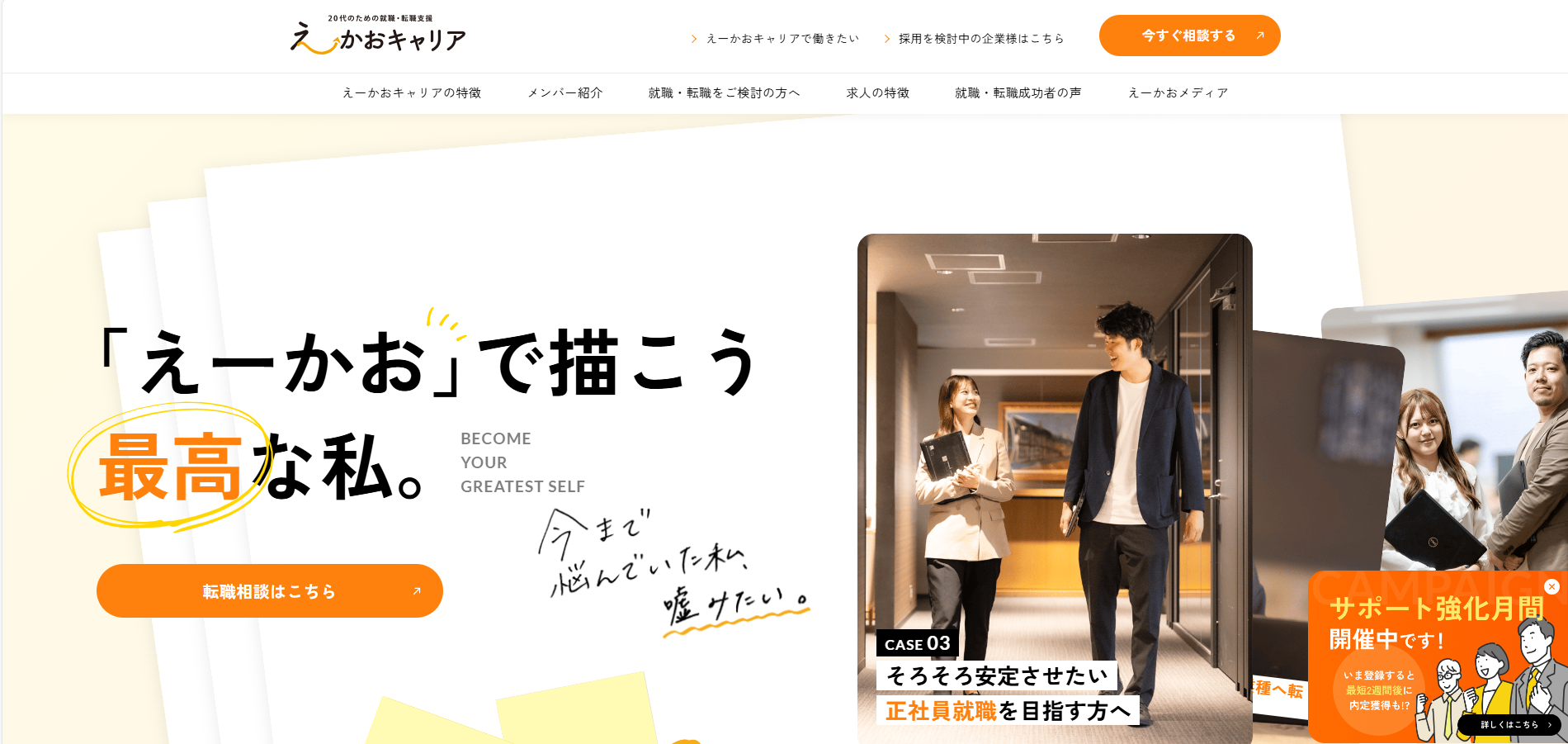 20代や第二新卒など転職した経験が浅い人に対してもしっかりサポート