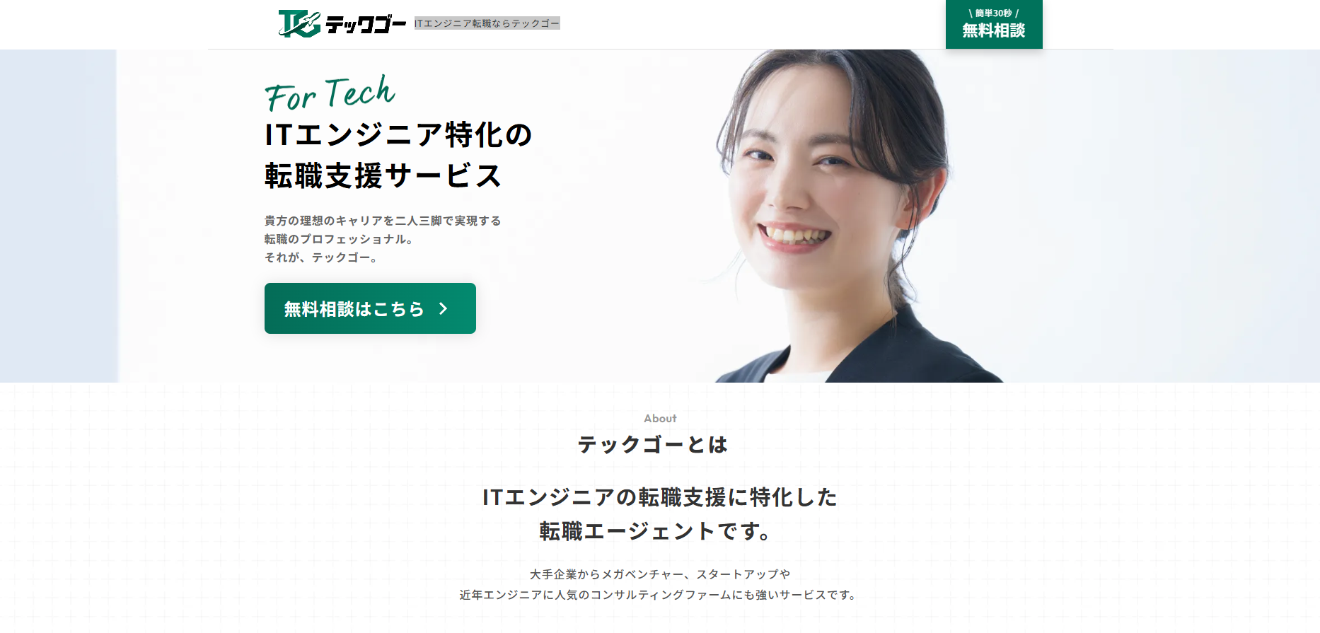 トップページからすぐに職種別のページに移動でき、ITやエンジニア業界など希望の職種の求人がチェックしやすくなっています。転職エージェントとの一体型なので、アドバイザーのサポートも受けることが可能です。