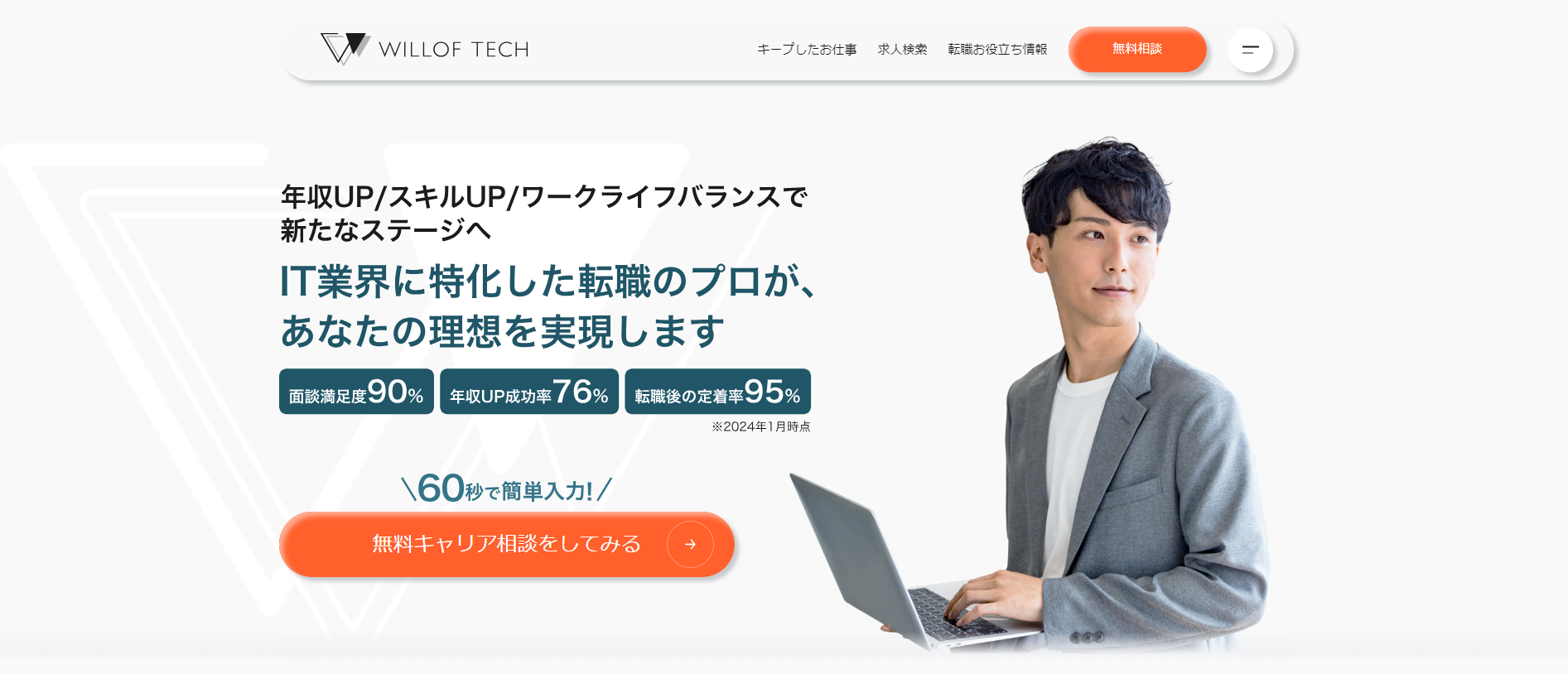 ITエンジニア特化型で95%が年収アップを実現