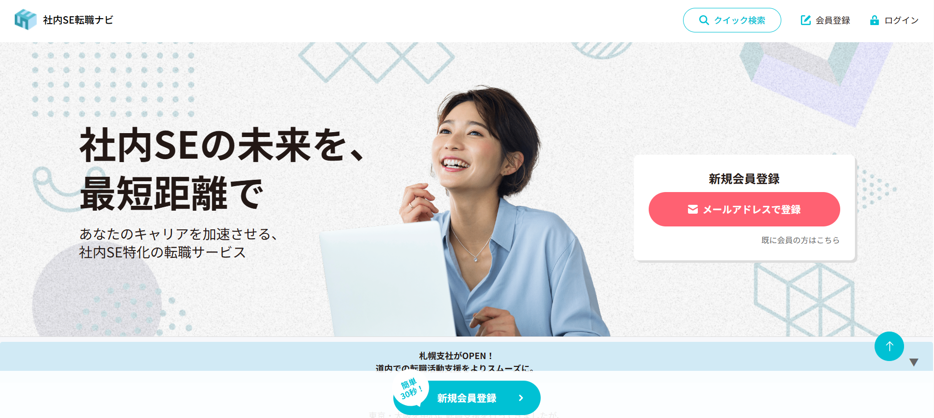 サイトが見やすく使いやすいのも特長です。職種別のページやエリア別のページにもすぐに移動でき、検索するのも楽でしょう。