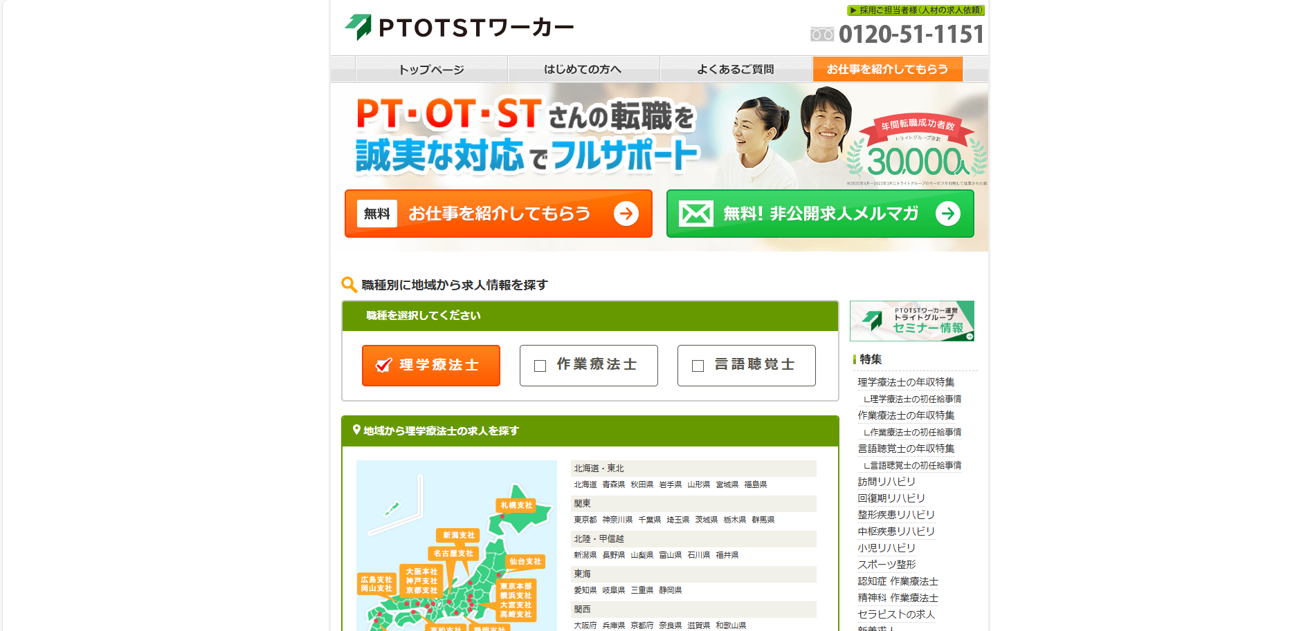 サイトが見やすく使いやすいのも特長です。職種別のページやエリア別のページにもすぐに移動でき、検索するのも楽でしょう。