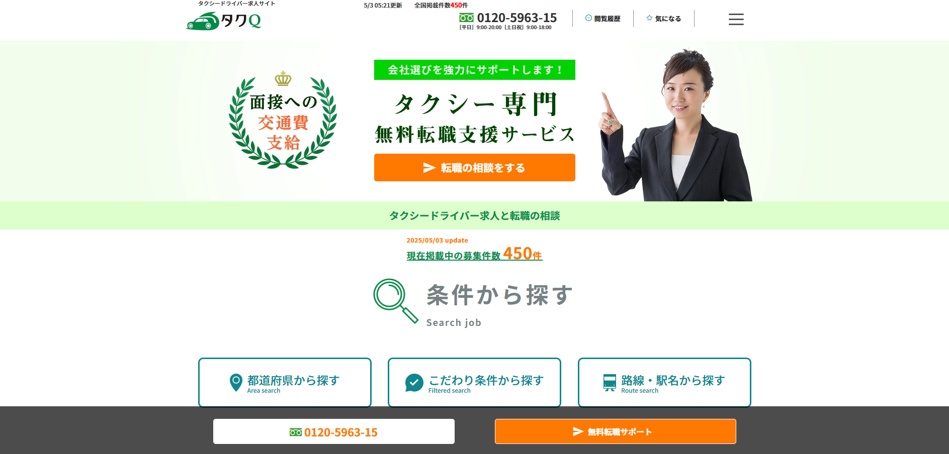 「タクQ」は、株式会社しごとウェブが運営するタクシードライバー専門の無料転職支援サービスです。全国のタクシー会社の求人情報を掲載し、求職者と企業のマッチングをサポートしています。
