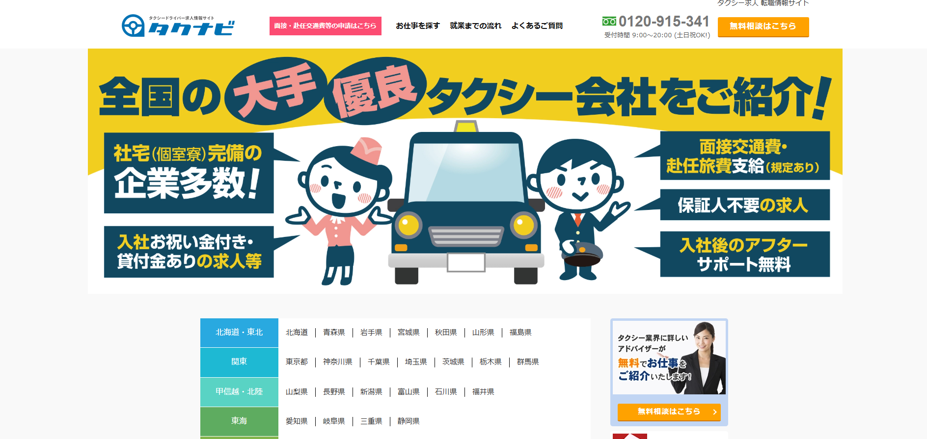 「タクナビ」は、タクシー業界に特化した転職支援サービスです。